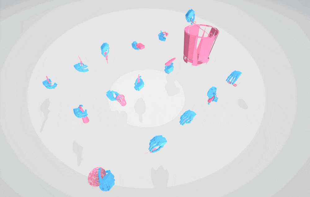 Figure 1: Example of functional grasp annotation using UniFucGrasp across diverse dexterous hands.